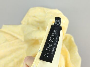 Długi rękawŻółta bluzka damska marki In The Style, ozdobiona drobnym, białym wzorem w kwiaty. Charakteryzuje się dekoltem w kształcie litery V, długimi rękawami oraz asymetrycznym dołem z falbanami, który nadaje jej lekkości. W talii znajduje się sznurek umożliwiający dopasowanie, a rękawy zakończone są mankietami. Bluzka jest wykonana z lekkiego materiału, idealnego na cieplejsze dni.