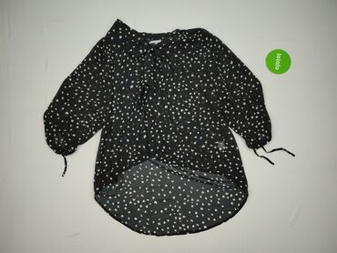 Bluzka damska z krótkim rękawem - Kolor: czarny w drobne białe serduszka - Krój: luźny, z marszczeniami przy dekolcie; zapięcie z przodu na zakładkę (listwa kryjąca) - Rękawy: krótkie - Dekolt: ok...