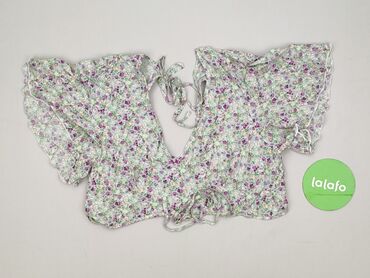 W serekTa damska bluzka z krótkim rękawem charakteryzuje się kwiecistym wzorem w odcieniach fioletu i zieleni, co nadaje jej świeży i wiosenny wygląd. Dekolt w kształcie litery V z wiązaniem oraz ozdobne troczki u dołu bluzki pozwalają na indywidualne dopasowanie i dodają jej uroku. Luźny krój z rozszerzanymi rękawami zapewnia komfort noszenia i swobodę ruchów, co sprawia, że jest idealna na cieplejsze dni. Lekki materiał sprawia, że bluzka jest przewiewna i przyjemna w dotyku.Doskonała do codziennych stylizacji, jak i na bardziej wyjątkowe okazje.