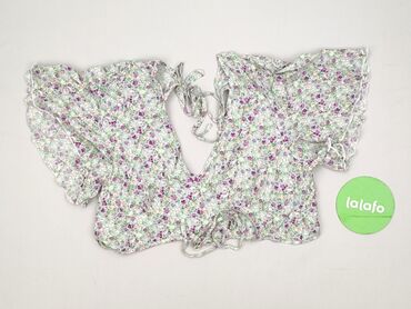 Bluzka damska NEW LOOK - Model: krótki top z krótkim rękawem - Krój: lekko dopasowany, delikatnie dłuższy tył - Dekolt: szeroki, łódkowy/opadający na ramiona - Wzór: kwiatowy – róże i bukiety w od...