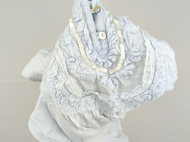 Bluzka damska Reserved w odcieniu błękitu, ozdobiona delikatnymi paskami i drobnymi kropkami. Posiada klasyczny kołnierzyk z koronkowym obszyciem i zapięcie na guziki. Krój bluzki jest dopasowany, ...