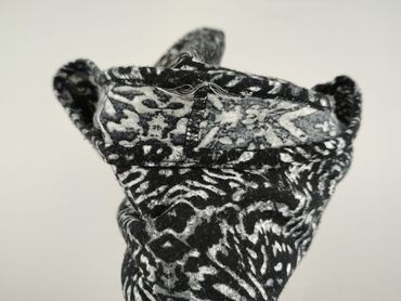 Czarna bluzka damska z długim rękawem - Fason swobodny, lekko rozszerzany ku dołowi - Dekolt w kształcie litery V z ozdobną lamówką w metalicznym, melanżowym splocie (taki sam akcent na dole bluzk...Stan:
