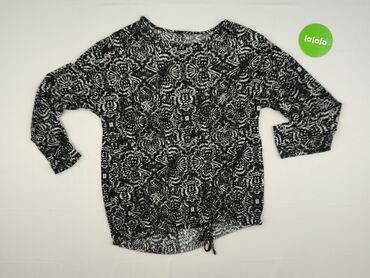 Długi rękawDamska bluzka z długim rękawem, w kolorze czarno-białym, ozdobiona wzorem all-over. Dekolt jest okrągły, a dół bluzki zakończony ściągaczem ze sznurkiem, co pozwala na regulację dopasowania. Materiał jest miękki i przyjemny w dotyku, co zapewnia komfort noszenia. Bluzka może być noszona na co dzień, do pracy lub na spotkania towarzyskie.