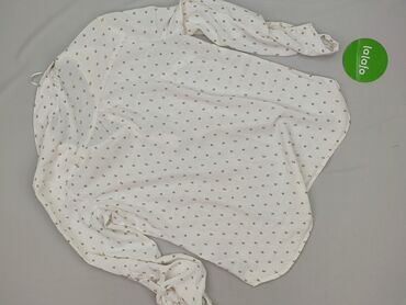 Biała bluzka damska w granatowe kropki (polka dot). - Krój: lekko wydłużony tył, zaokrąglony dół. - Rękaw: krótki, z możliwością podwinięcia i zapięcia na guzik. - Dekolt: stójka/okrągły, rozpinany...
