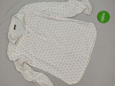 Bluzka damska z długim rękawem - Kolor: jasny kremowy/ecru - Wzór: drobne czarne kropeczki (all-over) - Krój: lekko luźny, z delikatnym marszczeniem - Dekolt: w kształcie litery V z krótką stójką ...Stan: