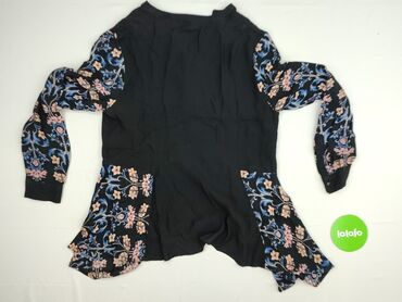 Długi rękawCzarna bluzka damska marki Monsoon, charakteryzująca się luźnym fasonem. Posiada długie rękawy zakończone mankietami zapinanymi na guziki. Dekolt w kształcie litery V z zapięciem na guziki dodaje jej elegancji. Bluzka zdobiona jest kwiecistym wzorem w odcieniach różu i błękitu, co nadaje jej atrakcyjny wygląd. Jest to praktyczny element garderoby, idealny na co dzień.Charakterystyka: