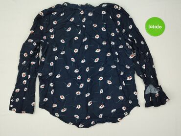 Bluzka damska z długim rękawem, w kwiatowo-ornamentowy wzór na granatowym tle. - Fason: lekko odcinana w talii, delikatnie rozkloszowany dół - Dekolt: okrągły - Rękawy: długie, zakończone gumką (b...