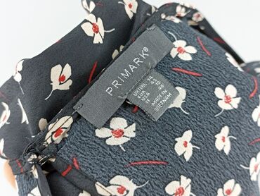Bluzka damska Primark - Krój: swobodny, lekko rozkloszowany - Dekolt: szeroki, marszczony gumką – można nosić klasycznie lub opuszczony na ramiona - Rękawy: krótkie, bufiaste - Wzór: czarne tło w ...
