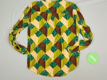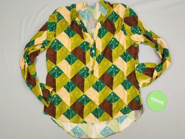 Damska bluzka z długim rękawem, rozmiar S. - Materiał: 100% poliester (metka na zdjęciu) - Krój: lekko taliowany, z kołnierzykiem i dekoltem w kształcie litery V zapinanym na guzik - Wzór: gę...