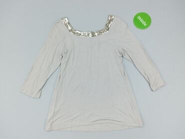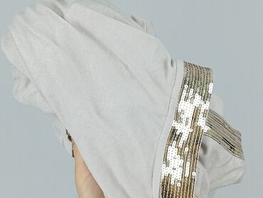 Szara bluzka/długi top z połyskującymi wstawkami z cekinów. - Kolor: jasny szary melanż - Krój: luźny, z obniżoną linią ramion - Rękawy: 3/4 - Dekolt: okrągły - Ozdoby: duże panele z białych/srebr...