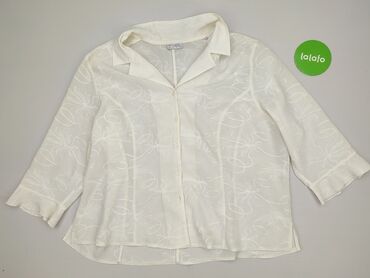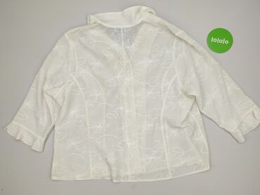 Biała koszula damska z długim rękawem i koronkowym kołnierzem. - Materiał: lekka, półprzezroczysta tkanina o subtelnej fakturze (metka: Finest Worsted – Excellent Quality) - Rozmiar z metki: M - F...