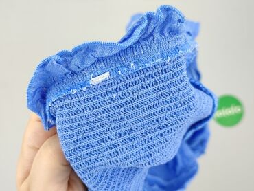 Bluzka damska z elastycznej dzianiny, bez rękawów, z krótką stójką. - Fason: dopasowany, lekko taliowany, długość do bioder. - Wzór: gęste kropki/konfetti w odcieniach granatu, turkusu i bieli, t...