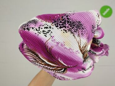 Bluzka damska z wiskozy, z nadrukiem piór. - Krój: luźny, tunikowy - Rękaw: 3/4 - Dekolt: w serek (V-neck) z troczkami i chwostami - Dół: zaokrąglony, lekko dłuższy tył - Wzór: pióra w odcieniach ...