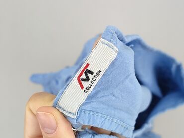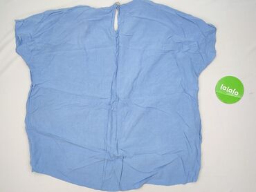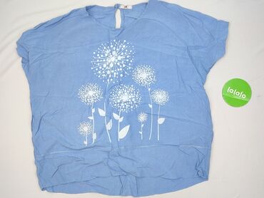 Bluzka damska z lekkiej, marszczonej tkaniny - Fason: luźny, z krótkim rękawem i lekko drapowanym przodem oraz dołem wykończonym delikatną gumką - Wzór: etniczny/geometryczny, w odcieniach niebiesk...