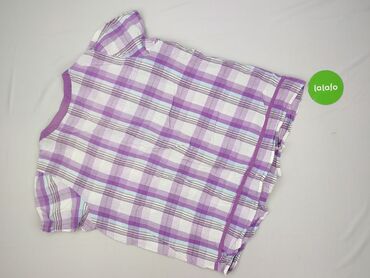 Bluzka damska z krótkim rękawem, rozmiar XL. - Krój: luźny, prosty; dekolt w kształcie litery V. - Zapięcie: krótka listwa guzikowa z 6 białymi guzikami. - Kieszeń: jedna naszywana na piersi. - Wz...