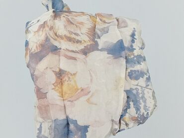 Bluzka damska w kwiaty - Krój: luźna góra z krótkim, opadającym rękawem; lekko marszczona po lewej stronie u dołu (asymetryczne drapowanie, podkreśla talię). - Dekolt: łódka. - Wzór: gęsty, wielob...