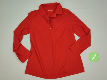 Bluzka damska POOL, kolor intensywna czerwień. - Krój: koszulowy, zapinany na guziki z przodu - Kołnierz z ozdobną wiązaną pussą/kokardą przy szyi - Długi rękaw, mankiety zapinane na guzik - Kiesz...