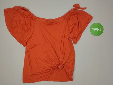 Bluzka damska F&F - Kolor: intensywny pomarańcz - Rozmiar z metki: UK 16 / US 12 / EUR 44 - Krój: luźniejszy, lekko zaokrąglony dół - Rękawy: krótkie z wycięciem „cold shoulder” i falbaną - Dekolt...