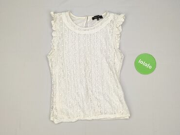 Biała bluzka bez rękawów New Look - Materiał: lekka, miękka dzianina z podszewką; przód pokryty ażurową koronką o kwiatowym motywie - Fason: prosty, zwiewny; lekko dłuższy tył - Dekolt: okrągły z ...