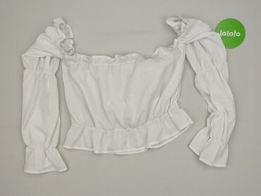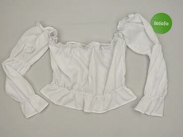 Bluzka damska off-shoulder w kolorze białym. - Fason: hiszpanka z odkrytymi ramionami i falbaną przy dekolcie - Ramiączka: cienkie, regulowane/sznurkowe do zawiązania na karku - Rękawy: długie, le...Stan: