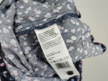 - Wzór: drobne, nieregularne kropki/kwiatuszki w odcieniach różu, błękitu i bieli na granatowym tle.
