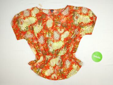 Bluzka damska z krótkim rękawem – rozmiar L - Wzór: duże kwiaty w odcieniach czerwieni, szarości, bieli i czerni; efektowny, malarski print na całej powierzchni. - Krój: lekko dopasowany, okrągły ...