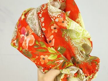 - Wzór: intensywny, czerwono‑pomarańczowy print w kwiaty i paisley w odcieniach zieleni, beżu i różu