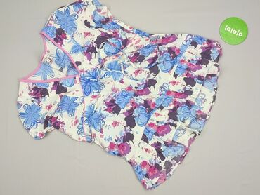 Biała damska bluzka ze wzorem kwiatowym. Posiada krótkie rękawy i okrągły dekolt, a także falbankę na dole, dodającą lekkości. Wykonana w 100% z wiskozy, co zapewnia komfort noszenia i przewiewność...Stan: