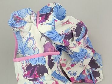 - Wzór i kolor: kwiatowy print w odcieniach niebieskiego, fioletu i różu na jasnym tle; lamówka w kolorze pudrowego różu.