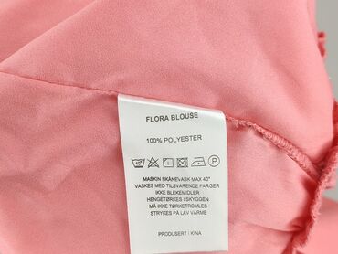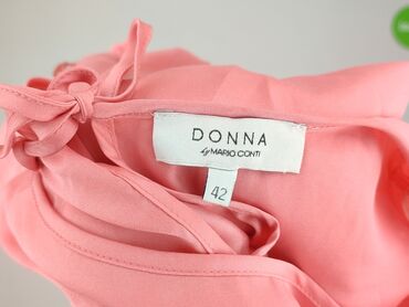 Bluzka PER MIO, rozmiar 42 - Kolor: łososiowo‑koralowy - Fason: krótki rękaw, okrągły dekolt ozdobiony falbaną i długą, zwiewną tasiemką do wiązania/kokardy - Materiał (z metki): 83% wiskoza, 11% ...