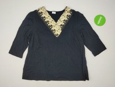 Bluzka damska F. MODA, rozmiar S/M. - Kolor: czarny - Dekolt w kształcie litery V z ozdobnym, kolorowym haftem kwiatowym (żółte, błękitne, czerwone i kremowe kwiaty, zielone listki) biegnącym półko...