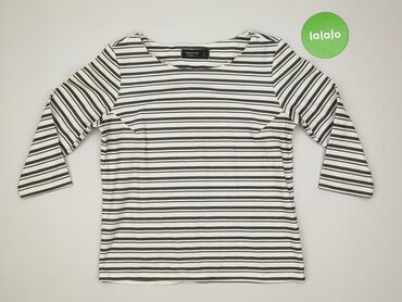 Bluzka damska RESERVED, rozmiar M. - Kolor: ecru/śnieżna biel z czarną koronką. - Fason: prosta, z okrągłym dekoltem. - Rękawy 3/4 wykończone szeroką, ażurową koronką w paisley. - Dół bluzki ozdobi...