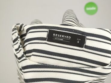 Top damski marki Reserved z krótkim rękawem, charakteryzujący się wzorem w paski. Dekolt jest okrągły, a rękawy bufiaste, co nadaje mu klasyczny wygląd. Zapięcie na plecach na guzik ułatwia zakłada...