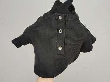 Czarna bluzka damska H&M - Krój: prosty, lekko taliowany, zaokrąglony dół - Rękaw: krótki, kimonowy - Dekolt: okrągły z pęknięciem na plecach zapinanym na guzik - Materiał: cienka, miękka tkanina ...