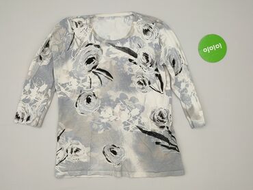 Bluzka damska z nadrukiem kwiatowym - Fason: prosty, luźniejszy krój - Dekolt: okrągły - Rękaw: 3/4 - Kolor tła: jasnoszary melanż - Wzór: gęsty, roślinno‑kwiatowy w odcieniach bordowego i ciemneg...