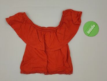 Bluzka damska HOUSE, rozmiar S. - Kolor: intensywna czerwień - Fason: hiszpanka/off-shoulder z szeroką, marszczoną falbaną przy dekolcie - Dekolt: elastyczna gumka – możliwość noszenia na odkryte ...