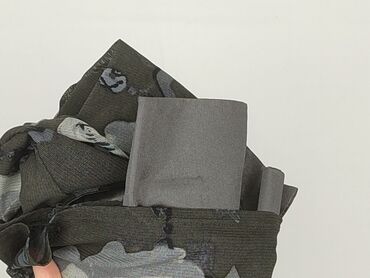 Bluzka damska z kołnierzykiem i krótkim rękawem, zapinana z przodu na guziki. Rozmiar z metki: XL. Wzór: patchwork w odcieniach czerni i szarości z dużymi kwiatami (róże i drobne niebieskie kwiatu...