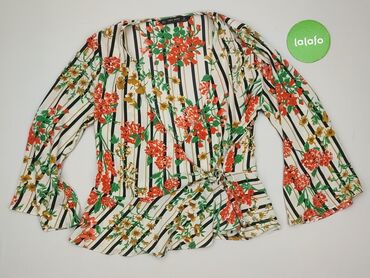 Bluzka ZARA – kwiatowy wzór - Model z dekoltem w serek - Długie, bufiaste rękawy zakończone szerokim mankietem na guziki - Talia z szerokim pasem marszczeń/szmokingu podkreślającym sylwetkę, delik...