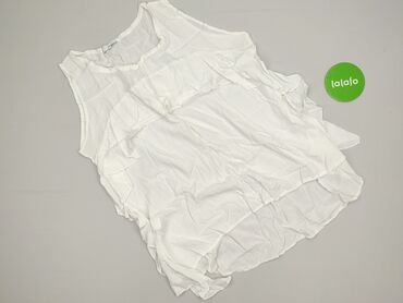 Biała bluzka damska VIZZY Collection - Rozmiar z metki: 54 - Materiał: 100% bawełna (cienka, przewiewna tkanina) - Krój: prosty, lekko luźny, krótszy tył z małym rozporkiem po bokach - Rękaw: krót...