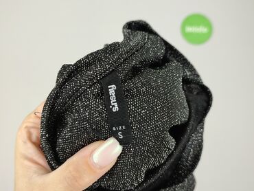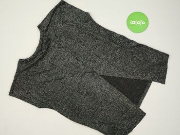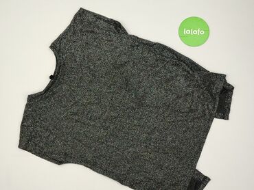 Bluzka damska Sinsay, rozmiar S. - Kolor: czarny - Krój: prosty, z krótkim rękawem - Przód i rękawy z efektowną, teksturowaną tkaniną o błyszczących niciach (delikatny połysk), tył gładki, elastycz...Stan: