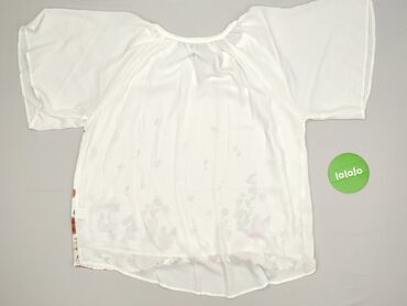 Bluzka damska z lekkiej, półprzezroczystej tkaniny w kolorze białym z kwiatowym nadrukiem w odcieniach różu, zieleni i czerni na rękawach oraz dolnym wykończeniu. - Krój luźny, swobodny - Dekolt ...Stan: