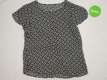 Bluzka damska Yessica (C&A) - Fason: kopertowy dekolt w serek, krótki rękaw. - Kolor: czarny z kontrastowymi, czarno-białymi wstawkami w roślinno-zwierzęcy wzór (kołnierz, rękawy, dół). - Materiał...