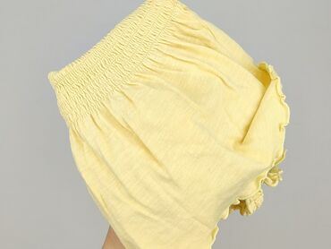 Bluzka damska KappAhl, rozmiar M. - Kolor: pastelowy żółty - Krój: dopasowany, dekolt w serek (V-neck) - Rękawy: krótkie z dekoracyjnymi marszczeniami/bufkami - Materiał: prążkowana, elastyczna dz...