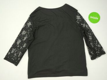 Czarna bluzka damska z ozdobnym panelem z przodu - Rozmiar: M (EUR/US/CA/MX – M) - Fason: luźniejszy, lekko wydłużony tył, rękaw 3/4 - Dekolt: łódka z subtelną lamówką; z tyłu łezka zapinana na gu...