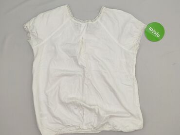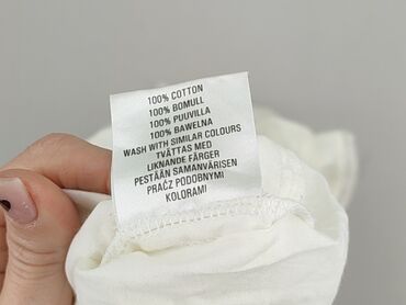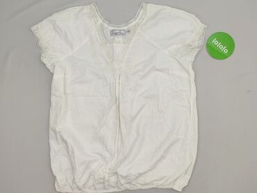 Bluzka damska z miękkiej, marszczonej tkaniny (double gauze) – kolor ecru/kość słoniowa. - Skład: 100% bawełna (metka w środku) - Rozmiar z metki: L - Krój: luźny, przewiewny - Rękaw: krótki - Dek...