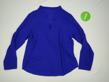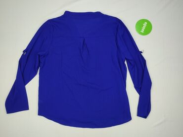 Elegancka bluzka damska w kolorze kobaltowym - Fason: luźny, z długim rękawem - Dekolt: stójka ozdobiona połyskującą taśmą z kryształkami - Zapięcie: z tyłu na guzik - Materiał: 100% poliester (Ma...