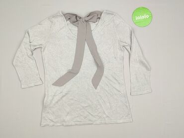 Bluzka damska Euphory, rozmiar M. - Kolor: melanżowy szary - Fason: luźniejszy, z długim rękawem - Dekolt: głębszy, z delikatnym załamaniem w kształcie litery V - Ozdoba: satynowa, srebrzysta wstą...