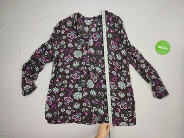 Bluzka damska w kwiaty - Krój: luźny, lekko taliowany, z krótkim rękawem - Dekolt: w serek z marszczeniem i troczkiem do regulacji w części środkowej - Wzór: drobna, wielobarwna łąka (róż, fiolet,...