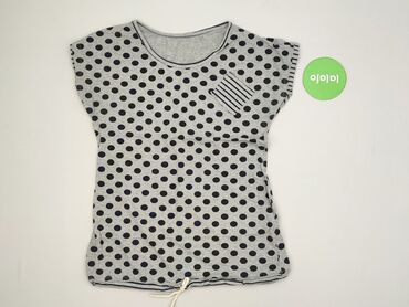 Bluzka damska Madex, rozmiar 38. - Krój: luźny, z krótkim rękawem typu kimono, dół wykończony gumką dla lekkiego bluzowania. - Wzór: białe tło w granatowe grochy z kwiatowym motywem w odcieniach r...