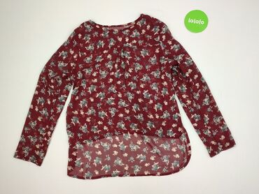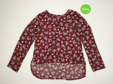 Bluzka damska Mark&Day, rozmiar L - Kolor: ciemna czerwień/burgund - Wzór: drobne, kwiatowe nadruki w bieli, różu i fioletach - Krój: luźny, zaokrąglony dół, dekolt w serek z delikatną zakładką z ...